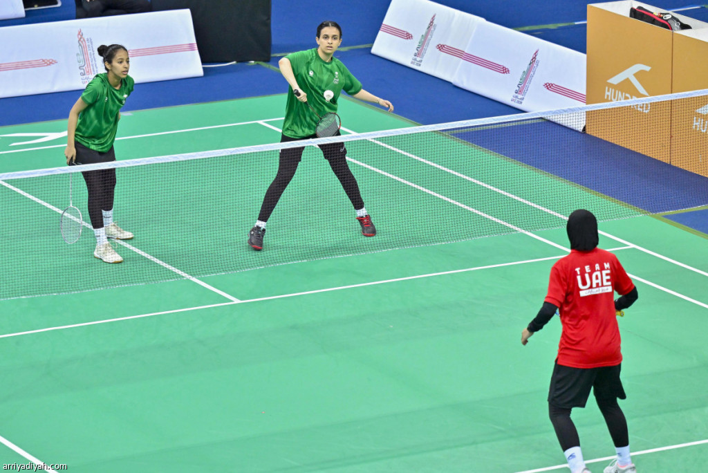 صبا الحارثي والبتول المطيري لاعبتا المنتخب السعودي للريشة الطائرة خلال مواجهة الإمارات الإثنين (المركز الإعلامي ـ اللجنة الأولمبية والبارالمبية السعودية)