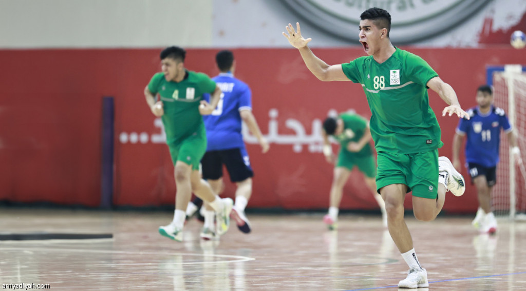صورة التقطت من مباراة المنتخب السعودي للشباب لكرة اليد أمام نظيره الكويت في دورة الألعاب الخليجية الأولى (المركز الإعلامي ـ الأولمبية السعودية)