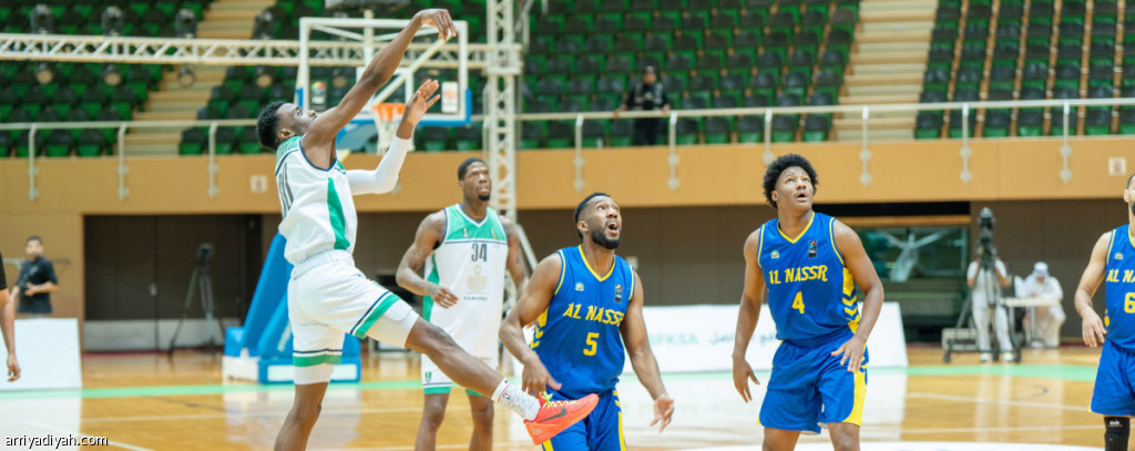 لاعب فريق الأهلي الأول لكرة السلة قبل تسديده الكرة خلال مواجهة النصر، الأربعاء (المركز الإعلامي ـ اتحاد السلة)