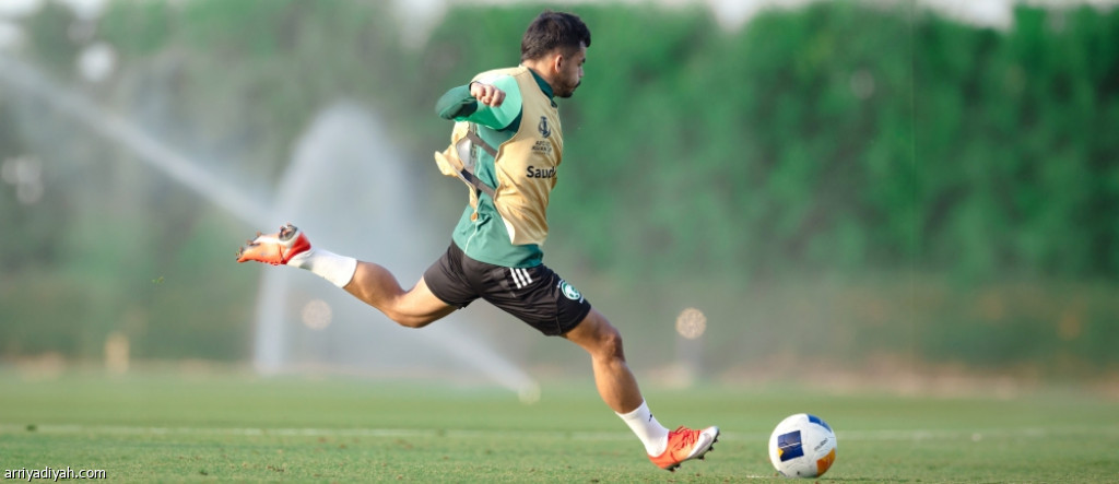 سعد الناصر، لاعب المنتخب السعودي تحت 23 عامًا لكرة القدم، يسدِّد الكرة خلال تدريبات الأربعاء (المركز الإعلامي ـ المنتخب السعودي)