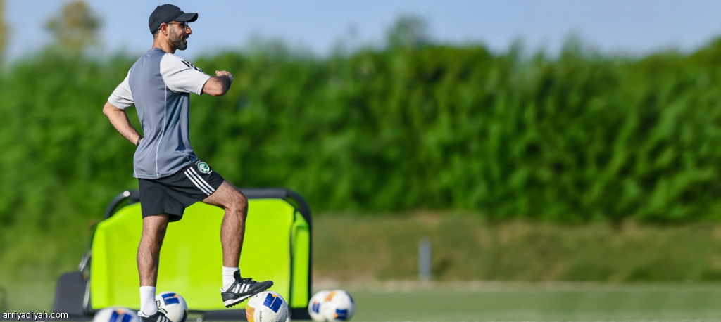 سعد الشهري، مدرب المنتخب السعودي تحت 23 عامًا لكرة القدم، خلال الحصة التدريبية (المركز الإعلامي ـ المنتخب السعودي)