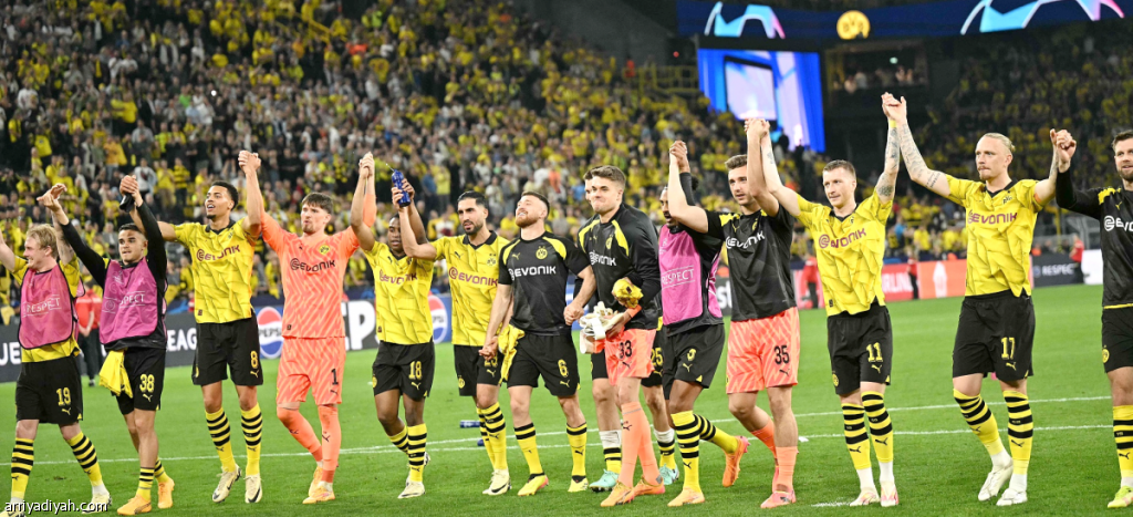 فرحة لاعبي فريق بوروسيا دورتموند الألماني لكرة القدم، بعد الفوز على باريس سان جيرمان الفرنسي، والتأهل إلى نهائي دوري أبطال أوروبا (أرشيفية)