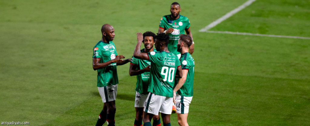 فرحة لاعبي فريق الاتفاق الأول لكرة القدم بهدفهم في مرمى الشباب، الخميس (المركز الإعلامي - الاتفاق)