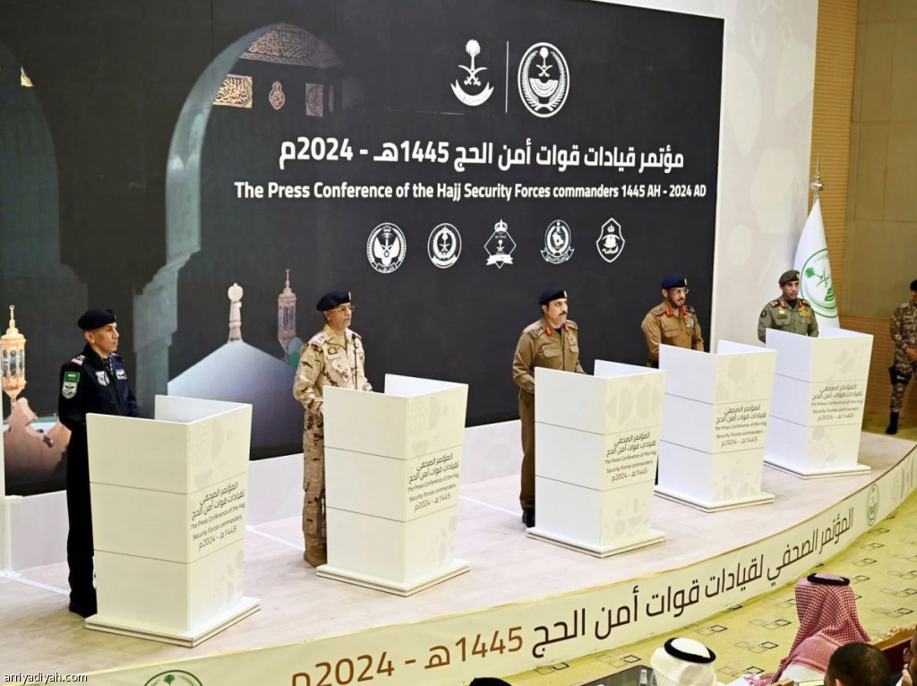عقدت وزارة الداخلية، السبت، المؤتمر الصحافي لقيادات قوات أمن الحج لهذا العام في مركز العمليات الأمنية الموحدة في مكة المكرمة، وتناول خطط الوزارة الأمنية والمرورية والتنظيمية لموسم حج هذا العام، بحضور الفريق محمد بن عبد الله البسامي مدير الأمن العام رئيس اللجنة الأمنية للحج، واللواء ركن محمد بن مقبول العمري قائد قوات الطوارئ الخاصة برئاسة أمن الدولة، واللواء الدكتور حمود بن سليمان الفرج قائد قوات الدفاع المدني بالحج، واللواء طيار ركن عبد العزيز بن محمد الدريجان قائد عام طيران الأمن، واللواء الدكتور صالح بن سعد المربع قائد قوات الجوازات بالحج.
