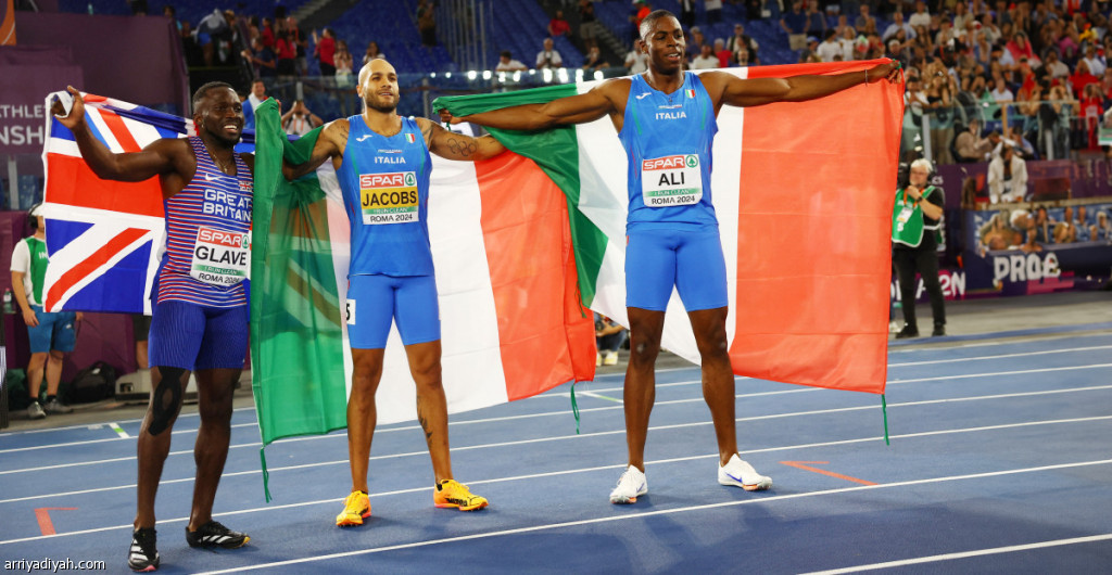 حصد الإيطالي لامونت مارسيل جاكوبس، الأحد، ذهبية سباق 100 متر عدو للرجال، ضمن منافسات بطولة أوروبا لألعاب القوى، المنظمة في روما، العاصمة الإيطالية.