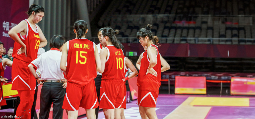 الصينية جانج زييو، لاعبة سلة منتخب بلادها، تستمع لتوجيهات جهازها الفني في مباراة منتخب بلادها ضد نيوزيلندا في بطولة كاس آسيا تحت 18 عامًا (الفرنسية)