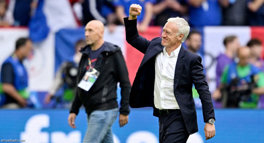 الفرنسي ديدييه ديشامب، مدرب منتخب بلاده، يرد تحية المشجعين بعد الفوز على بلجيكا في ثُمن نهائي كأس أوروبا 2024 (الفرنسية)