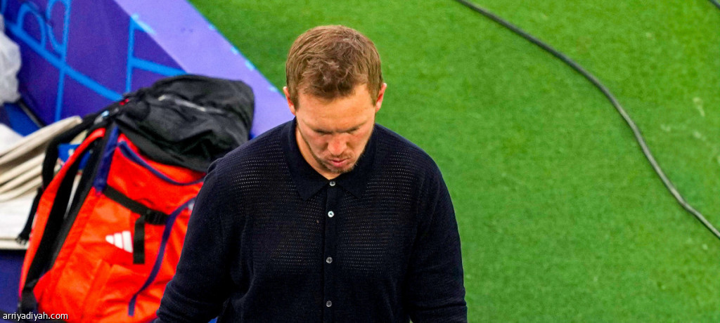 يوليان ناجلسمان، مدرب المنتخب الألماني الأول لكرة القدم، يخرج مطرق الرأس من الملعب بعد الخسارة أمام إسبانيا، الجمعة، في ربع نهائي يورو 2024 (أسوشيتد برس)