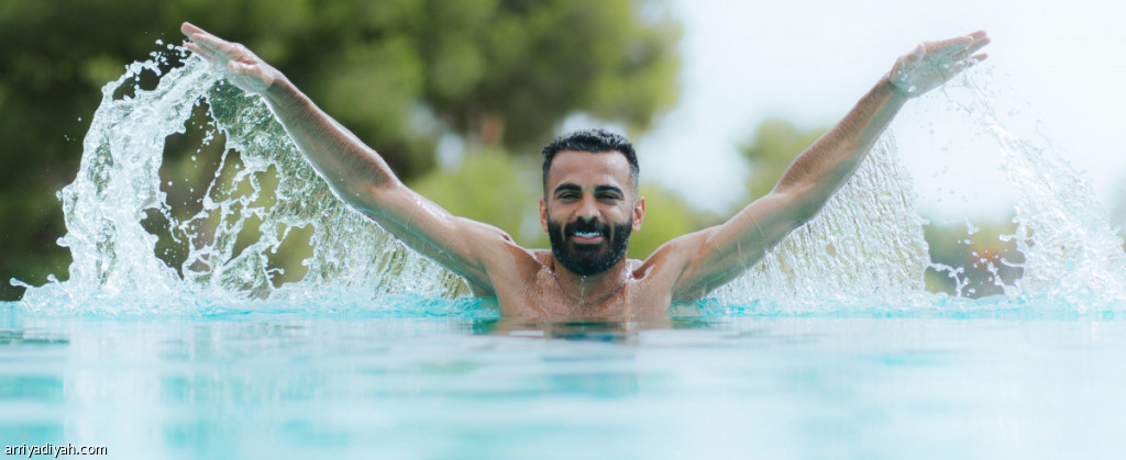 مد الله العليان، لاعب فريق الاتفاق الأول لكرة القدم، في المسبح خلال الحصة الصباحية، الأحد، بمعسكر الفريق في مدينة لا مانجا الإسبانية (المركز الإعلامي ـ الاتفاق)
