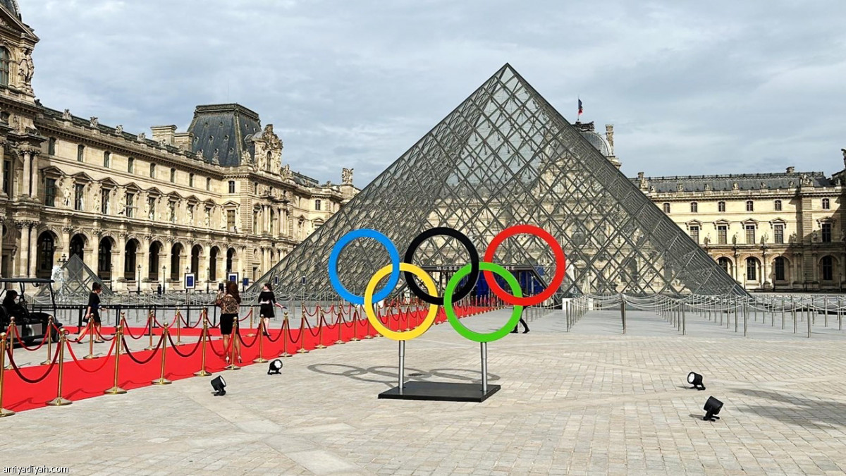 مجسَّم متحف اللوفر وشعار أولمبياد باريس 2024 (أرشيفية)