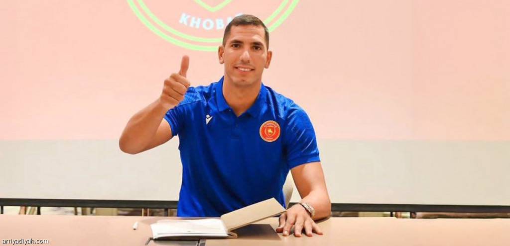 الإسباني جويل روبلز خلال توقيع عقد انضمامه إلى القادسية (أرشيفية)