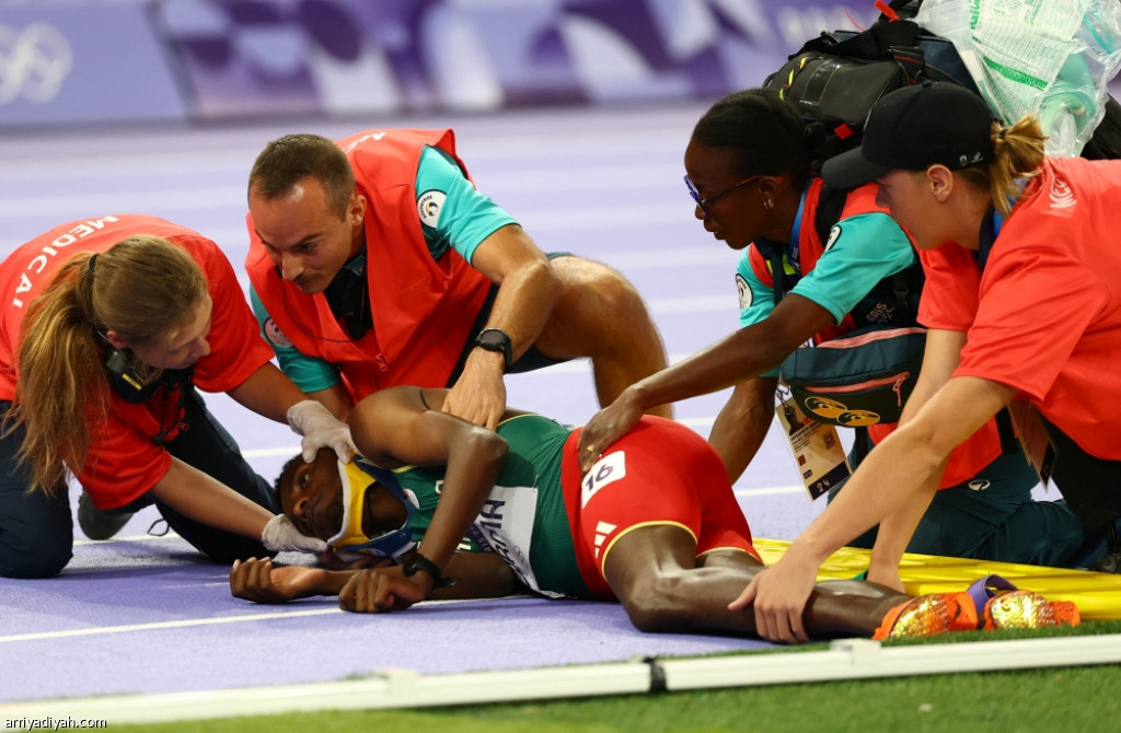العداء الإثيوبي لاميتشا جيرما يتلقى العلاج بعد سقوطه خلال نهائي سباق 3 آلاف متر موانع للرجال في أولمبياد باريس 2024 (رويترز)