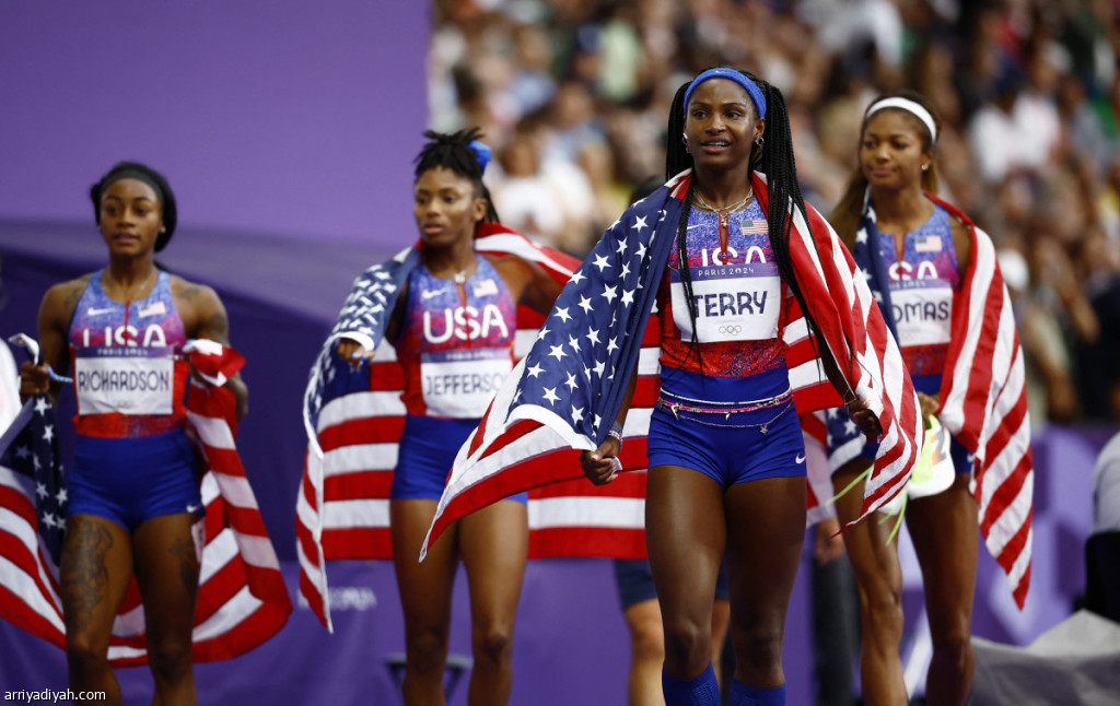 تُوِّجت عداءات الولايات المتحدة الأمريكية، الجمعة، بذهبية سباق التتابع 4 مرات 100م في منافسات ألعاب القوى ضمن أولمبياد باريس، ليعوضن إخفاق طوكيو 2020 بعد حصولهن على الفضية خلف الجامايكيات.