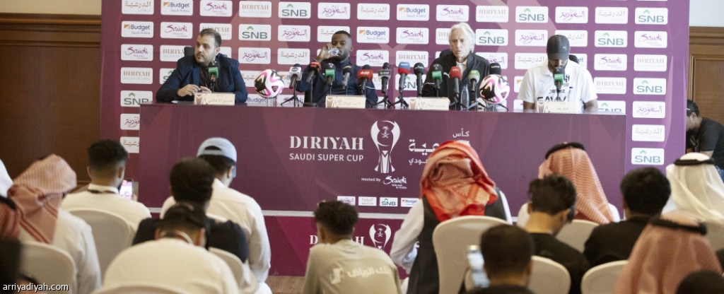 احتضن فندق قصر أبها، الإثنين، المؤتمر الصحافي للبرتغالي جورجي جيسوس، مدرب فريق الهلال الأول لكرة القدم، قبل مواجهة الأهلي، الثلاثاء، في كأس الدرعية للسوبر السعودي. تصوير: سعد الدوسري ومشعل القدير