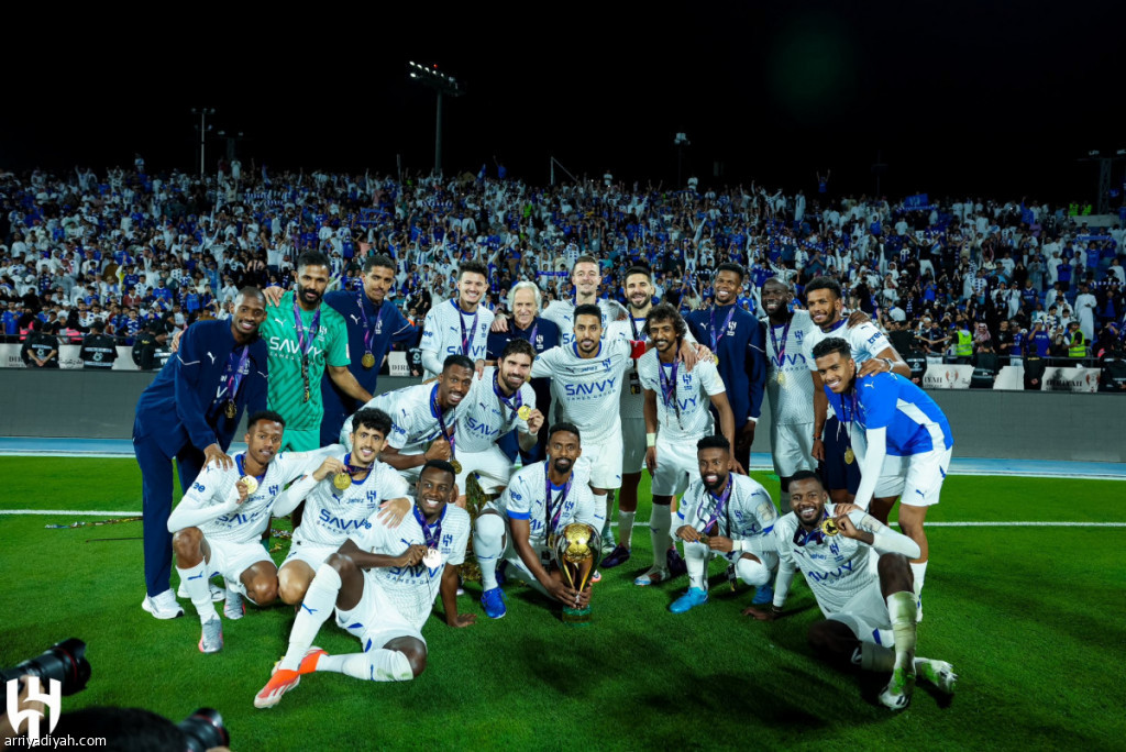 لاعبو فريق الهلال الأول لكرة القدم يحتلفون بعد تحقيق لقب كأس السوبر عقب الفوز على النصر 4-1 في النهائي، السبت الماضي (المركز الإعلامي ـ الهلال)