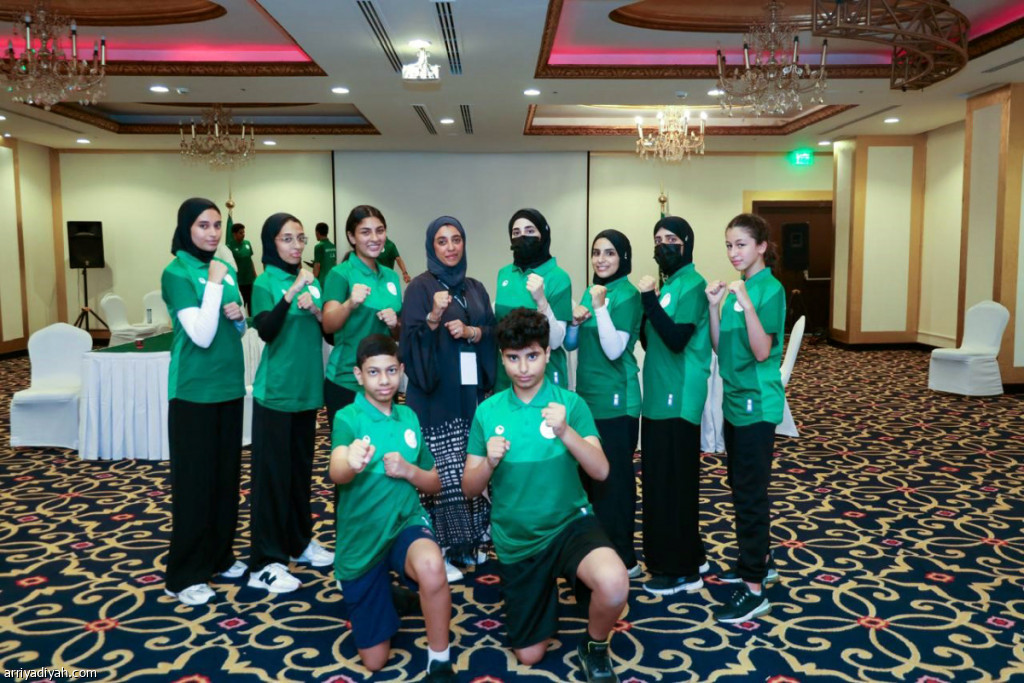مجموعة من لاعبات وناشئي المنتخب السعودي للكيوكوشن، الخميس (المركز الإعلامي ـ اللجنة السعودية للكيوكوشن)