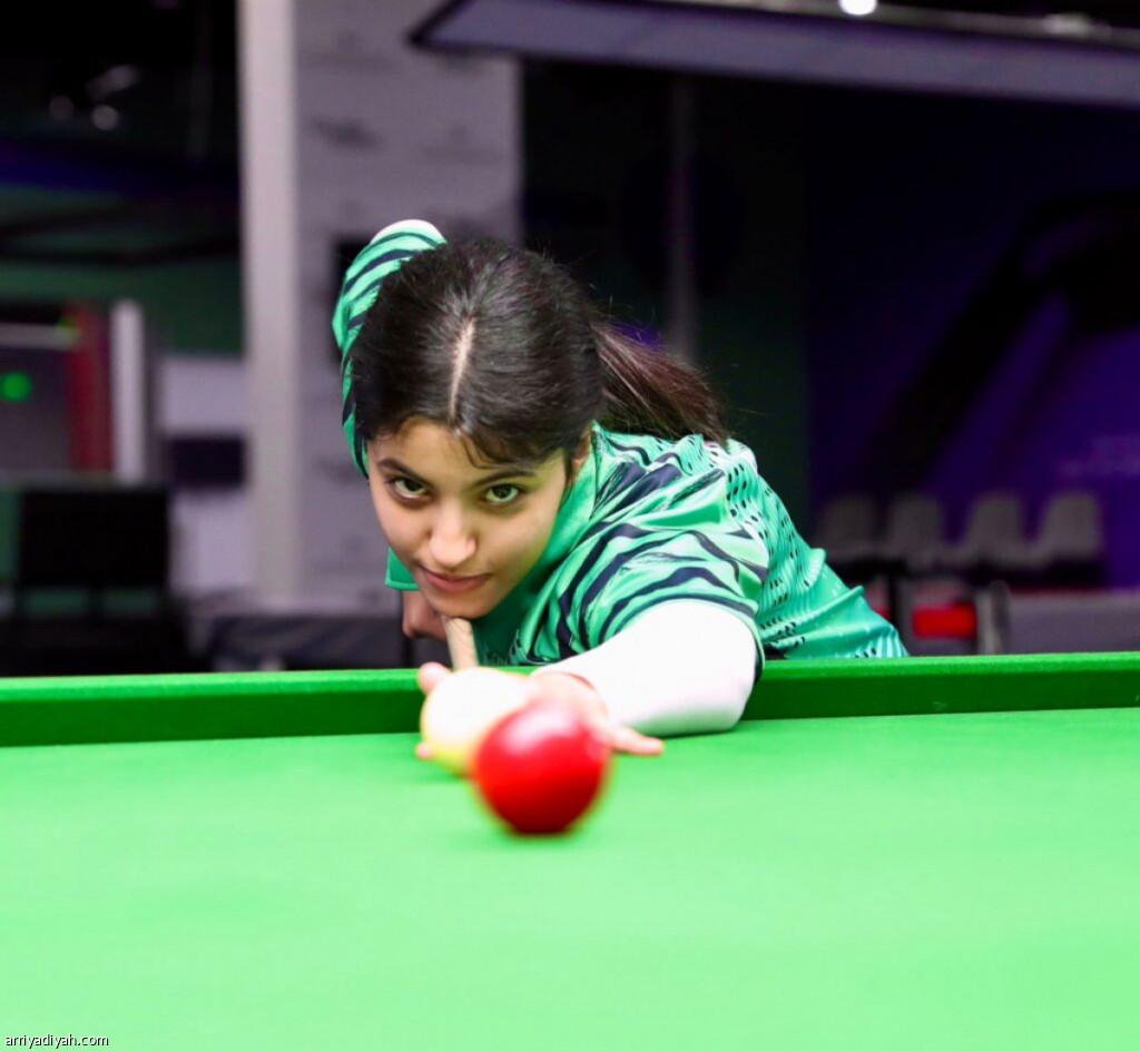 نوت البلوي، لاعبة المنتخب السعودي للسنوكر، أثناء مشاركتها في التدريبات اليومية (المركز الإعلامي ـ اتحاد البلياردو)