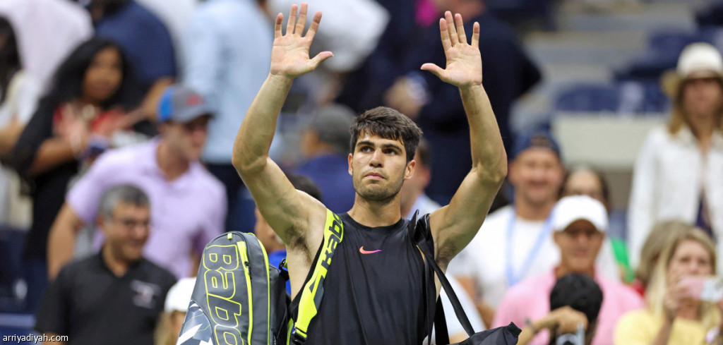 كارلوس ألكاراز، لاعب كرة المضرب، يحيي الجماهير بعد خسارته أمام الهولندي بوتيك فان دي في بطولة أمريكا المفتوحة (الفرنسية)