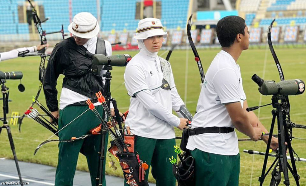 لاعبو المنتخب السعودي للسهام خلال حصةٍ تدريبيةٍ قبل انطلاق البطولة الآسيوية، الجمعة (المركز الإعلامي - اتحاد السهام)