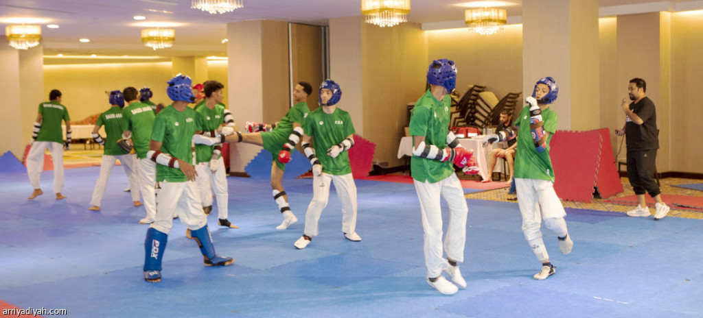 جانب من تدريبات المنتخب السعودي للتايكوندو أثناء معسكرهم الداخلي في مدينة الرياض (المركز الإعلامي ـ اتحاد التايكوندو)