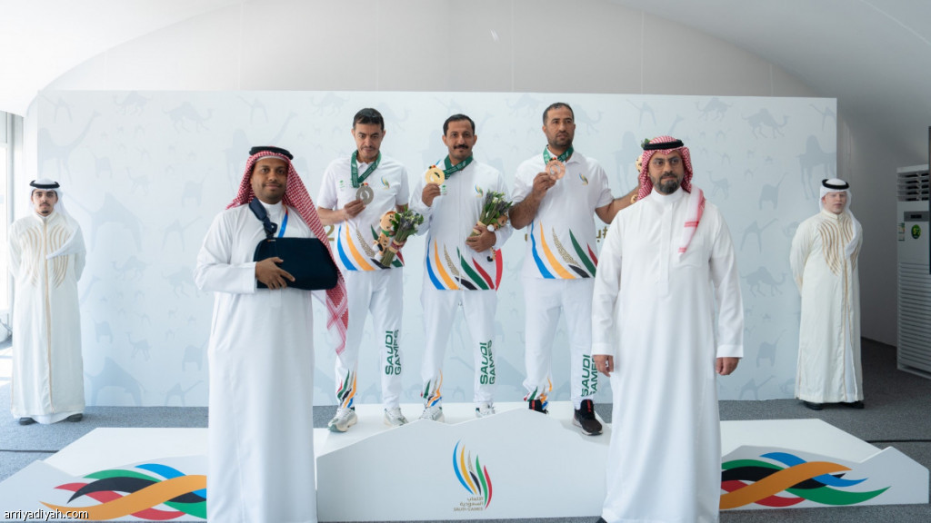 جانب من تتويج أصحاب المراكز الثلاثة الأولى في مسابقة الرماية ضمن دورة الألعاب السعودية الثالثة (المركز الإعلامي ـ الألعاب السعودية)