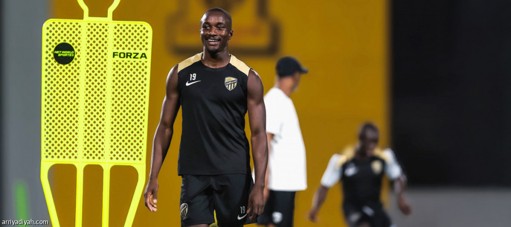 الفرنسي موسى ديابي مهاجم فريق الاتحاد الأول لكرة القدم خلال تدريبات، الثلاثاء (المركز الإعلامي - الاتحاد)
