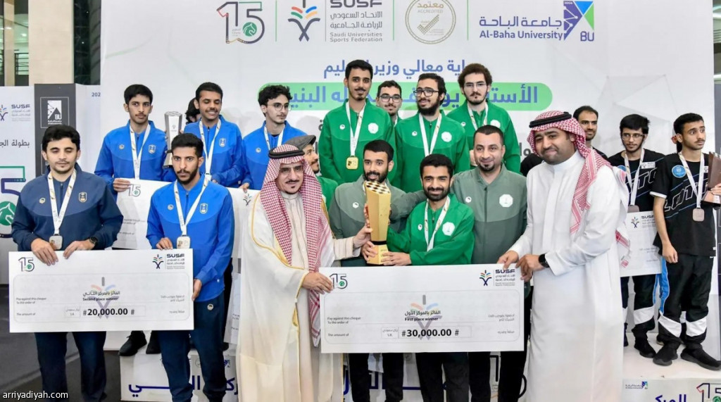 وتوَّج محمد الشمري، رئيس جامعة الباحة والأمين العام للاتحاد السعودي للرياضة الجامعية، والدكتور خالد الخريجي، مدير البطولة، الفائزين بالمراكز الأولى.