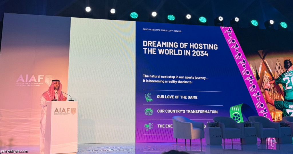 وقال خلال كلمة في مؤتمر محامي كرة القدم «AIAF»، الأربعاء، في الرياض: «نستعرض لماذا نرغب باستضافة العديد من الدول، ونريد أن نشرح لكم كأس العالم الذي نسعى لاستضافته، ونحلم باستضافة المونديال لأننا نحب اللعبة، منذ 2016، التاريخ سيسجل أننا نحن من يكتب التاريخ و60 في المئة من السكان تحت 35 عامًا، ومعظمهم أصغر مني، ويملكون الطاقة، والصفاء لاستضافة هذا الحدث الكبير».