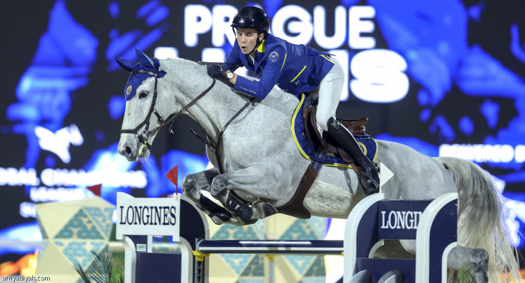 أحد المشاركين في التصفيات النهائية لبطولة «لونجين» العالمية لقفز الحواجز (المركز الإعلامي ـ اللجنة المنظمة)