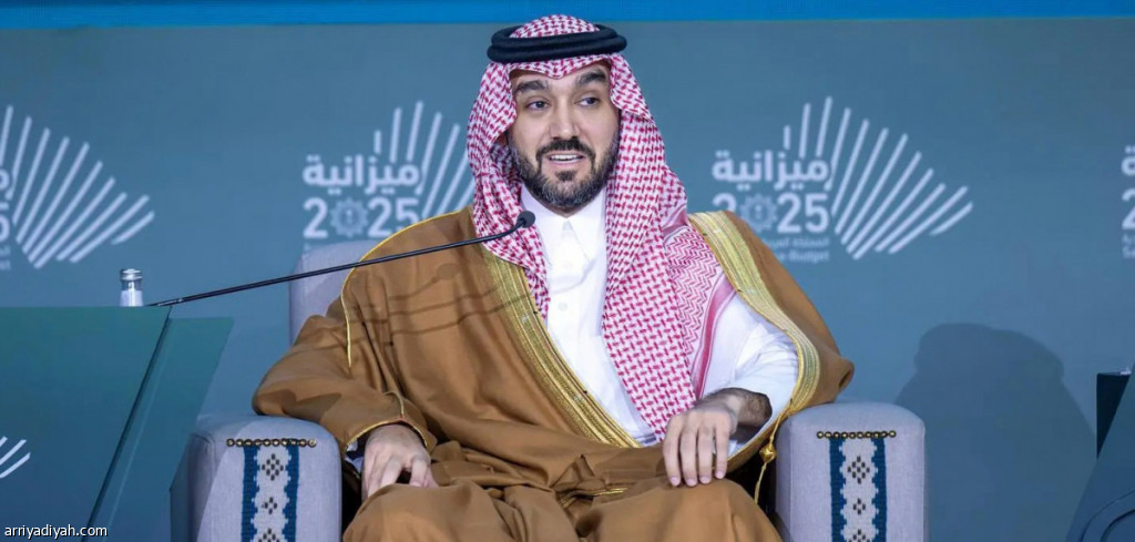 الأمير عبد العزيز الفيصل وزير الرياضة رئيس اللجنة الأولمبية والبارالمبية السعودية، يتحدث في جلسة حوارية بعنوان «التنوع الاقتصادي في إطار الميزانية» ضمن فعاليات ملتقى الميزانية، الأربعاء (واس)