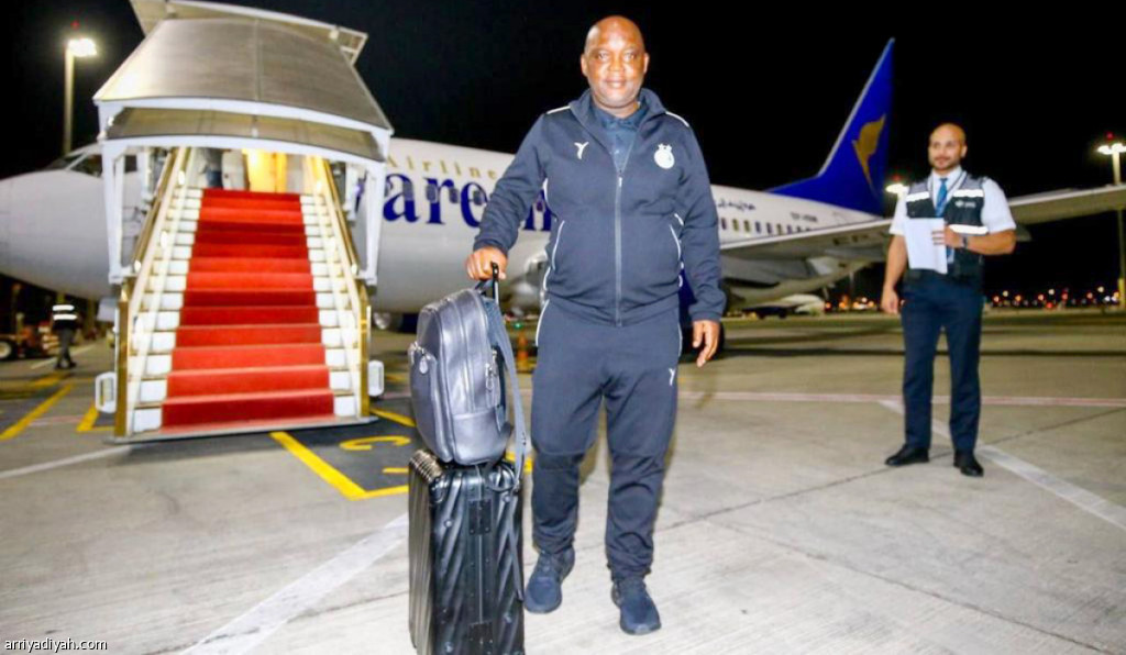 بيتسو موسيماني، مدرب استقلال طهران الإيراني، في مطار جدة قبل التعادل الإثنين مع الأهلي، ضمن منافسات دوري أبطال آسيا للنخبة (المركز الإعلامي ـ استقلال طهران)