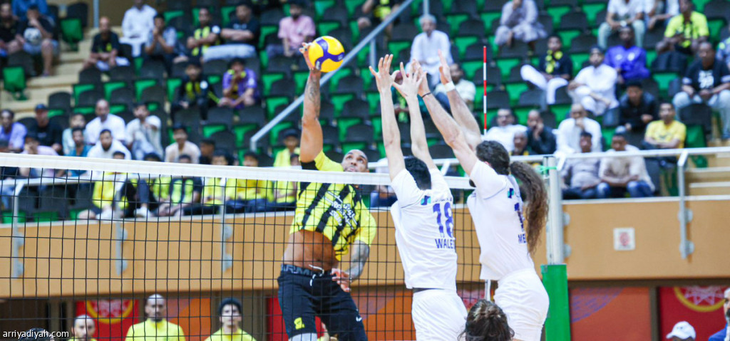 جانب من مواجهة فريق الهلال الأول لكرة الطائرة، ونظيره الاتحاد في الدوري الممتاز (المركز الإعلامي ـ اتحاد الطائرة)