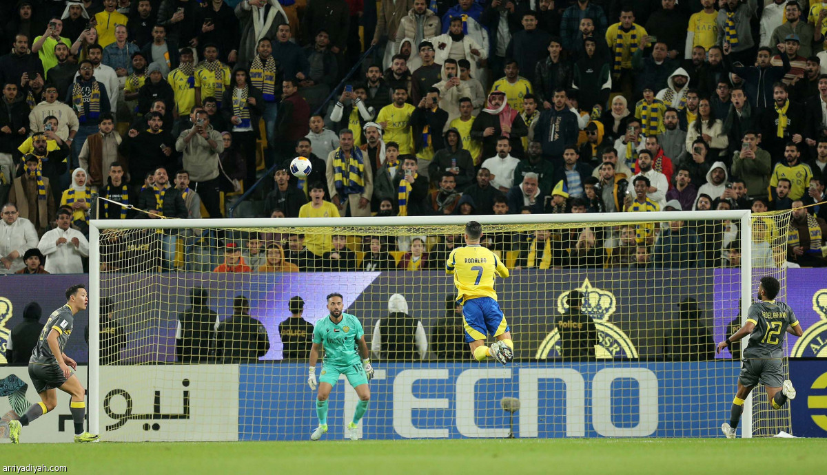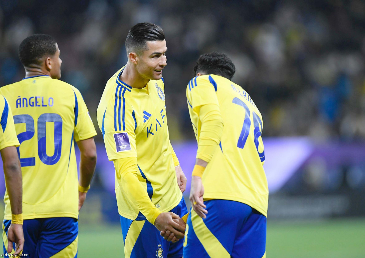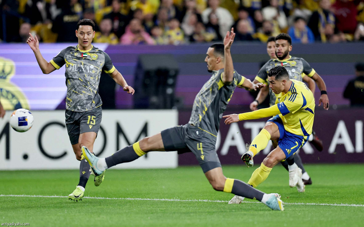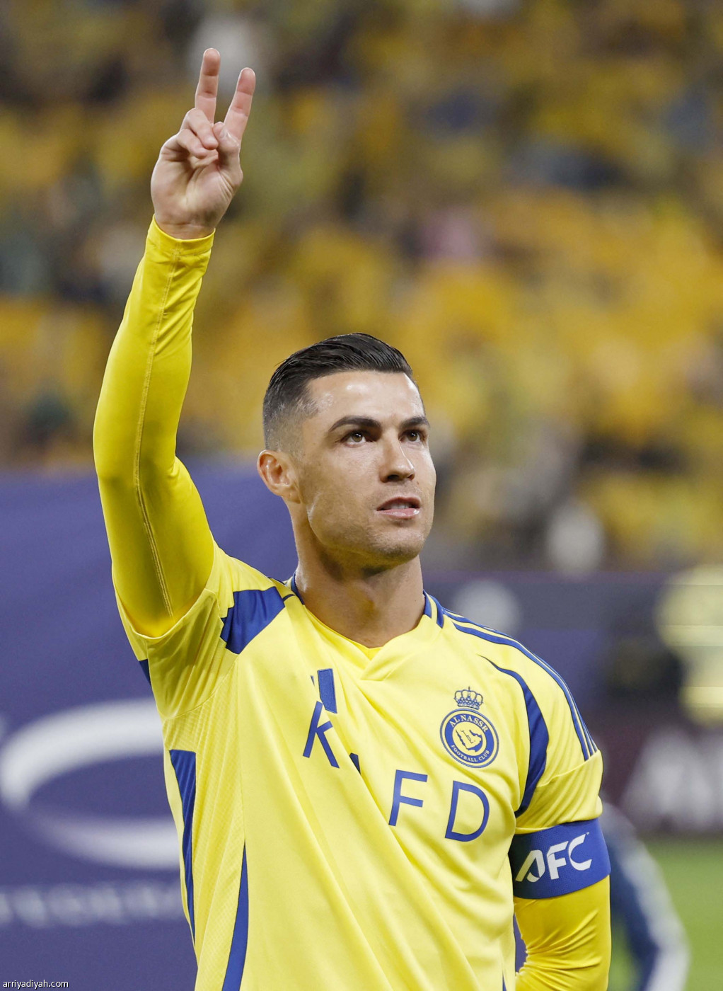 تألق النجم البرتغالي كريستيانو رونالدو، قائد فريق النصر الأول لكرة القدم، أمام الوصل الإماراتي، الإثنين في الرياض، محرزًا هدفين، أحدهما من ارتقاءة سينمائية في الهواء، قادا الأصفر إلى الفوز 4- 0 ضمن سابع جولات مجموعة الغرب من دوري أبطال آسيا للنخبة.. وحسم الفريق، الذي يدربه الإيطالي ستيفانو بيولي، تأهله إلى ثُمن النهائي في وقتٍ سابق تصوير: يزيد الضويحي و(المركز الإعلامي - النصر) و(رويترز) و(حساب اللاعب في إكس)
