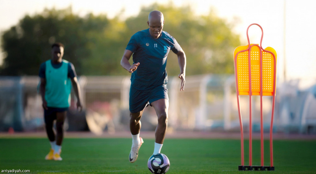 الزيمبابوي نوليدج موسونا لاعب فريق الأخدود الأول لكرة القدم خلال التدريبات (أرشيفية)