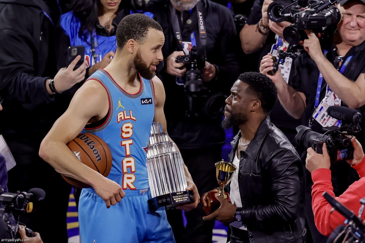حصد الأمريكي ستيفن كاري، لاعب فريق جولدن ستايت ووريورز لكرة السلة، الإثنين، جائزة أفضل لاعب خلال مواجهة «كل النجوم»، التي تجمع أفضل 24 لاعبًا في المسابقات المحلية الأمريكية. (وكالات)