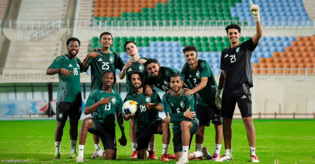 لاعبو المنتخب السعودي تحت 23 عامًا لكرة القدم بعد نهاية التدريبات، الأحد في عمان استعدادًا لبطولة كأس اتحاد غرب آسيا (المركز الإعلامي ـ المنتخب السعودي)