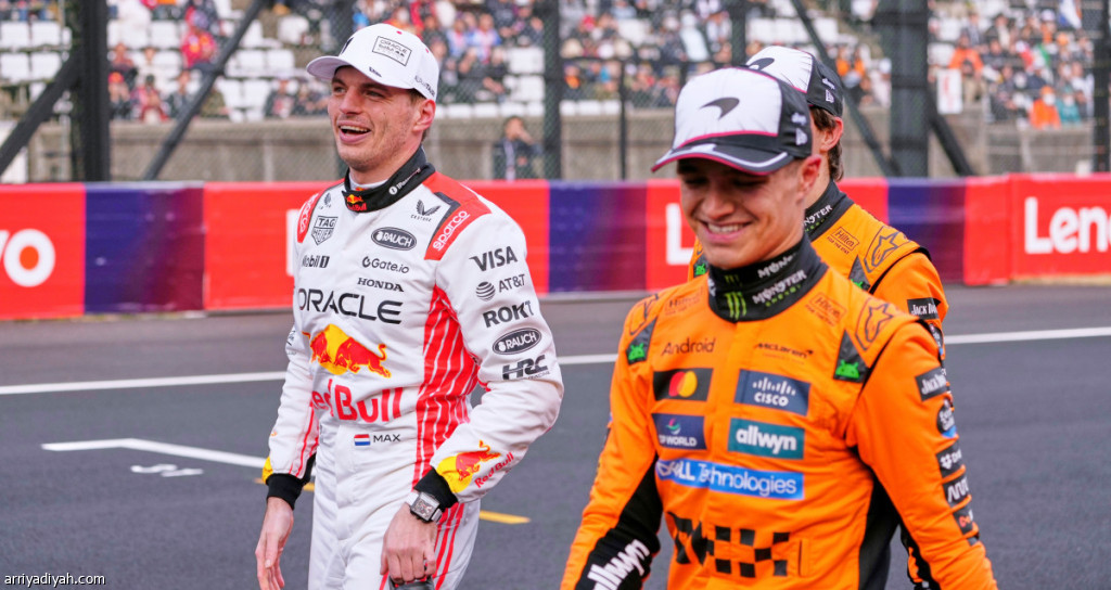 الهولندي ماكس فيرستابن، سائق فريق ريد بول، والبريطاني لاندو نوريس، سائق فريق مكلارين، السبت، بعد انتهاء التجارب التأهيلية الخاصة بجائزة اليابان الكبرى للفورمولا 1.(الفرنسية)