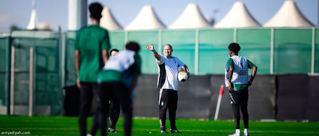 البرازيلي ماريو جورجي، مدرب المنتخب السعودي تحت 17 عامًا لكرة القدم، يوجه اللاعبين خلال الحصة التدريبية، السبت (المركز الإعلامي ـ المنتخب السعودي)