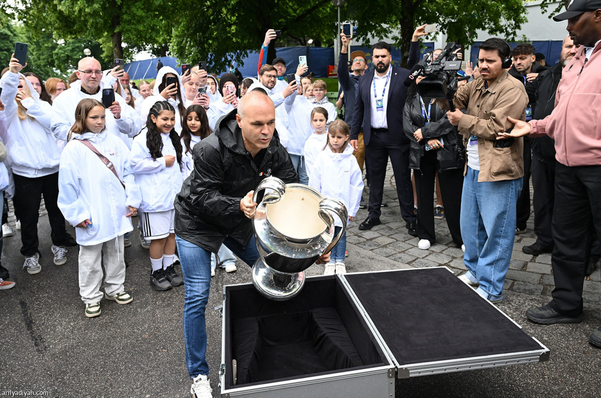 شارك الإسباني أندريس إنييستا، النجم السابق لفريق برشلونة والمتوج بكأس العالم 2010، في الاحتفالية التي ينظمها الاتحاد الأوروبي لكرة القدم على هامش مشروع «سكورينج جيلز» بالحديقة الأولمبية في مدينة ميونيخ الألمانية التي ستحتضن السبت نهائي دوري أبطال أوروبا بين فريقي باريس سان جيرمان وإنتر ميلان الإيطالي. ويستهدف المشروع اللاجئات والمهاجرات من سن 9 إلى 18 عامًا، من أجل تعزيز الثقة بالنفس والشعور بالانتماء للمجتمع، مما يعزز التكامل الاجتماعي. (الأوروبيةن رويترز، أسوشيتد برس)