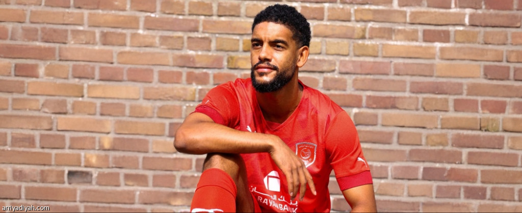 الكاميروني جان شارل كاستيليتو بقميص الدحيل القطري عقب إعلان التعاقد، الخميس (المركز الإعلامي - الدحيل)