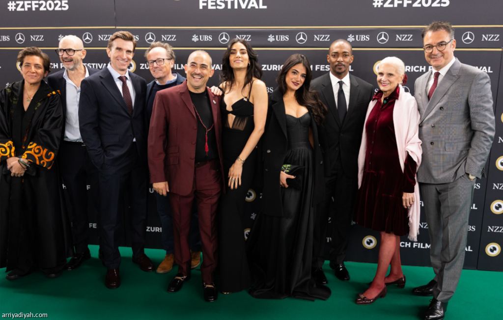 أبطال فيلم «محاربة الصحراء» خلال حضورهم العرض الخاص في مهرجان زيوريخ السينمائي (المركز الإعلامي ـ إم بي سي)
