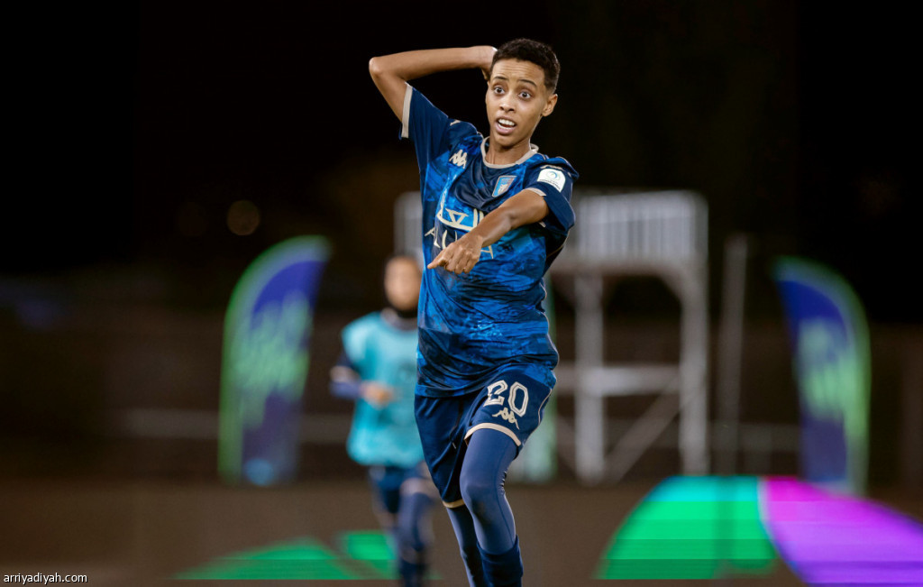 نادية حماد لاعبة فريق العلا الأول لكرة القدم للسيدات تحتفل بعد تسجيلها هدفًا في مرمى شعلة الشرقية، السبت (المركز الإعلامي ـ سيدات العلا)