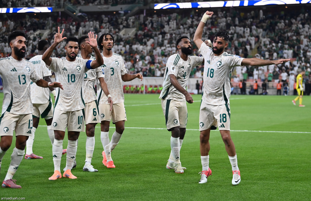 خطا المنتخب السعودي الأول لكرة القدم خطوة مهمة نحو بلوغ كأس العالم 2026 بعد فوزه على نظيره الإندونيسي 3ـ2 في افتتاح منافسات المجموعة الثالثة للملحق الآسيوي على ملعب «الإنماء» في مدينة الملك عبد الله الرياضية بجدة، الأربعاء تصوير: علي خمج وعدنان مهدلي