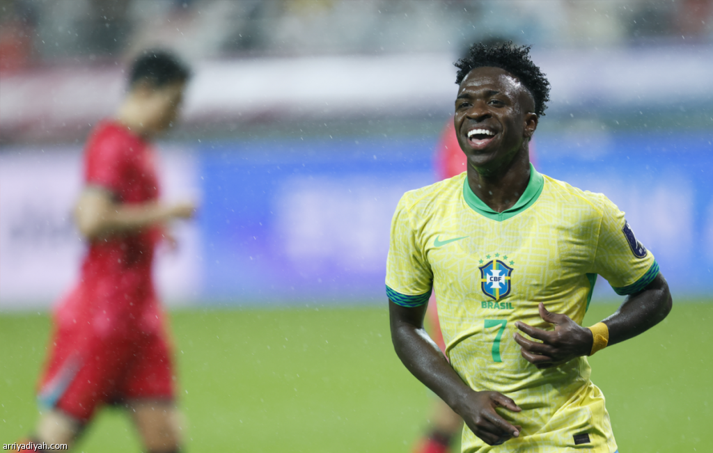 البرازيلي فينيسيوس جونيور يحتفل بالهدف الخامس في مرمى كوريا الجنوبية (رويترز)