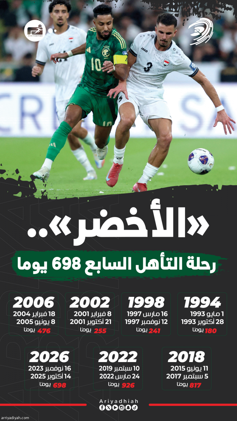 «الأخضر».. رحلة التأهل السابع 698 يوما