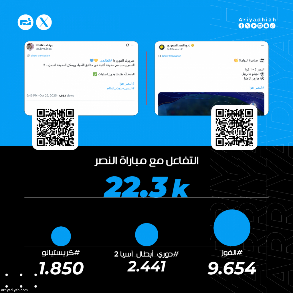 انتصار النصر في المباراة الآسيوية يسيطر على اهتمام مستخدمي «إكس»