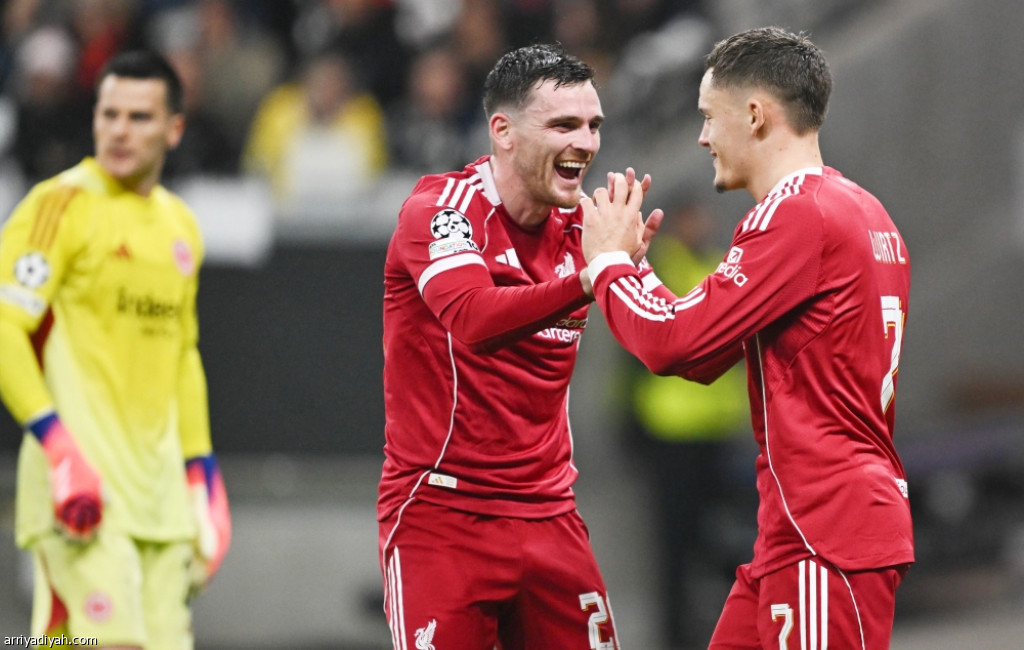 وريان فيرتز، لاعب ليفربول، مع كونور برادلي زميله بتسجيله الهدف الرابع لفريقه ضد آينتراخت فرانكفورت ضمن أبطال أوروبا( ارشيفية)