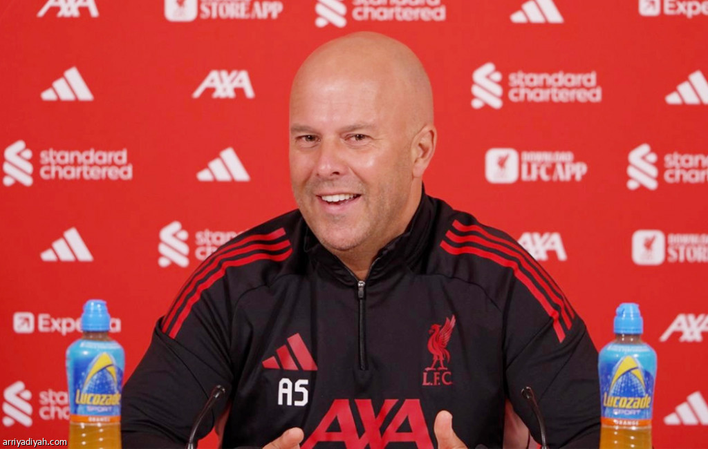 الهولندي آرني سلوت مدرب فريق ليفربول الإنجليزي الأول لكرة القدم خلال حديثه في المؤتمر الصحافي، الجمعة (المركز الإعلامي - ليفربول)