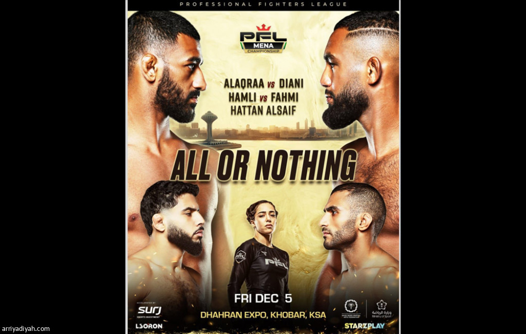 تستضيف مدينة الخبر السعودية مطلع ديسمبر المقبل نهائيات بطولة PFL MENA لموسم 2025 تحت شعار «الكل أو لا شيء» في الظهران إكسبو، بمشاركة نخبة من أبرز المقاتلين العرب الذين يتنافسون في أربعة نزالات نهائية على ألقاب مناطقهم في فئات الوزن المختلفة.
