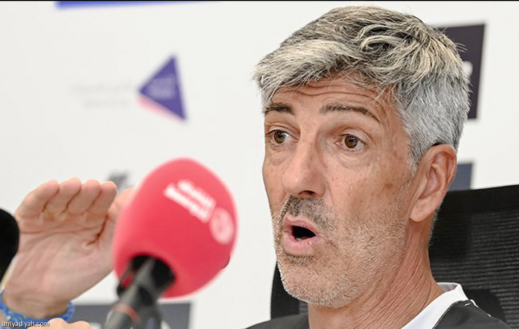 الإسباني إيمانول ألجواسيل، مدرب فريق الشباب الأول لكرة القدم، خلال المؤتمر الصحافي، الجمعة، قبل لقاء ضمك، السبت. (المركز الإعلامي ـ الشباب)